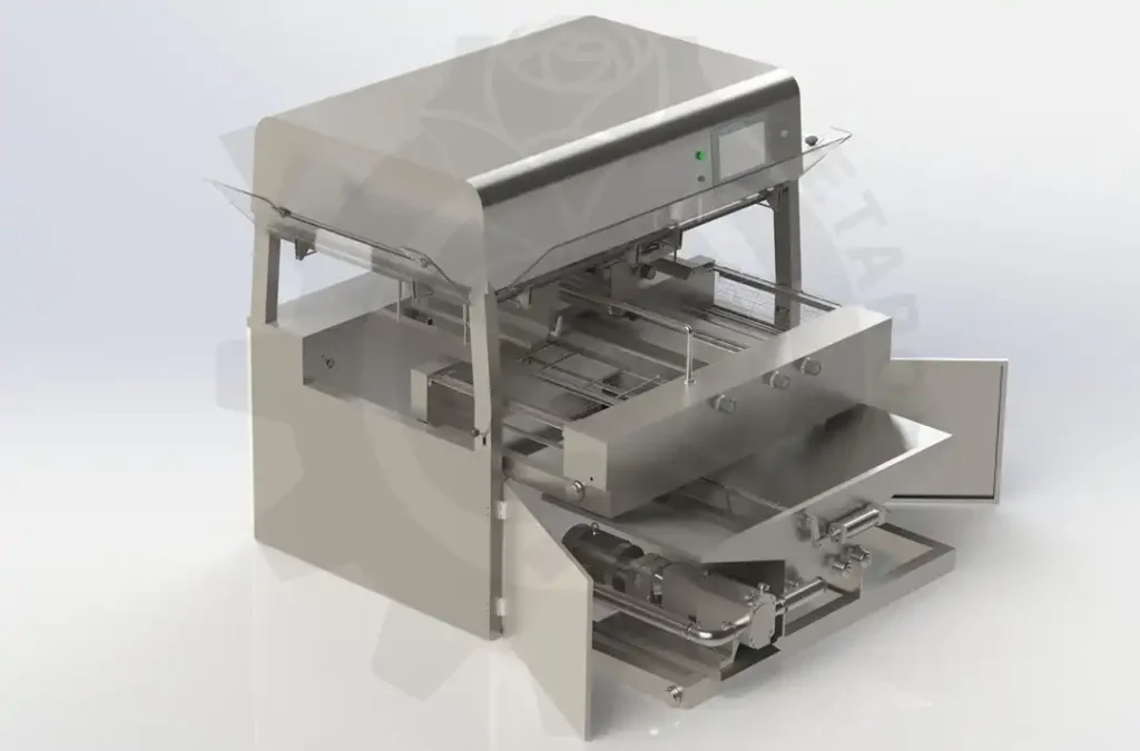ایتارز طراحی دستگاه را به گونه‌ای انجام داده است که شکلات به طور مستمر و یکنواخت روی محصولات هدایت شود. این طراحی باعث می‌شود ظاهر شیرینی، بیسکویت و خرما همیشه حرفه‌ای و استاندارد باقی بماند.